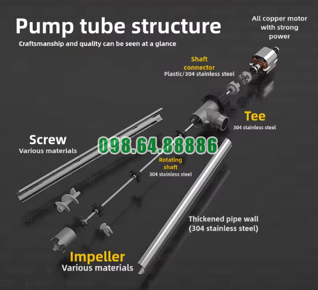 Trục quay Inox 304 là một bộ phận rất quan trọng trong Bơm điện hút chất đặc từ thùng phuy JDT-4000W-LQ. Đây không chỉ là chi tiết truyền động giữa động cơ và cánh bơm, mà còn ảnh hưởng trực tiếp đến độ ổn định, độ bền và hiệu quả vận hành của máy khi bơm các chất lỏng có độ nhớt cao.