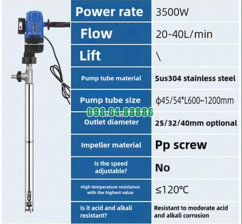 Thông số Máy bơm điện cầm tay hút thùng phuy JDT-3500W-LGG120