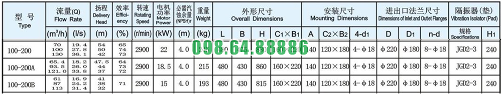 Máy bơm inline, bơm lùa, bơm cấp nước ISG100-200, IRG100-200 22kw, 100m3, 50m