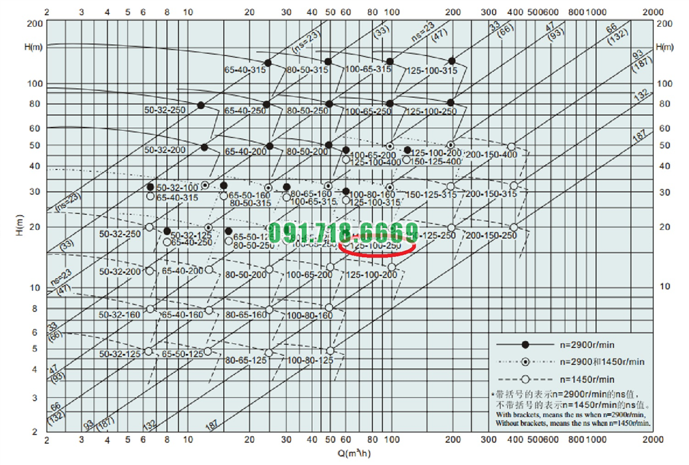 Đường cong hiệu suất của bơm nước cánh hở công nghiệp model IHK125-100-250