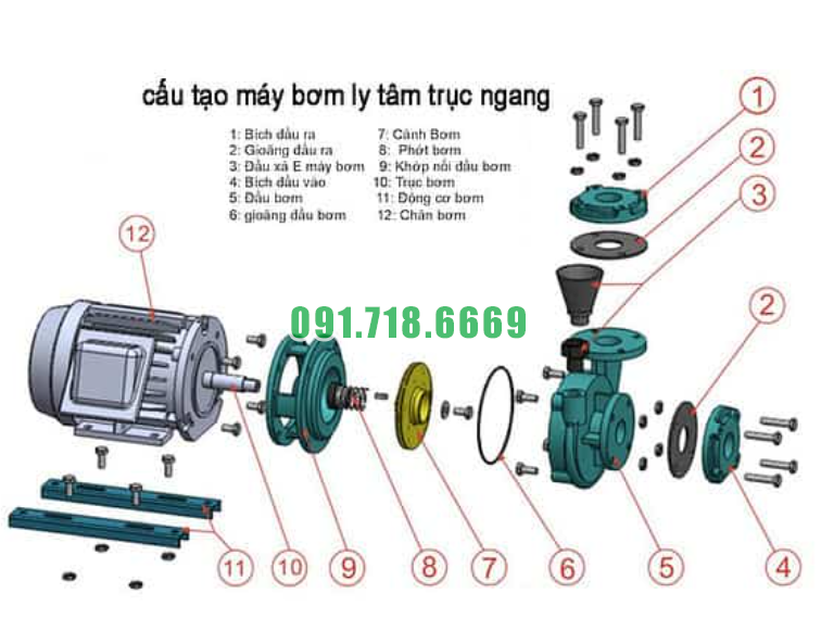 Hệ thống ổn định: Bao gồm các vòng bi và các bộ phận khác giúp duy trì sự ổn định và đảm bảo hoạt động trơn tru của máy bơm.
