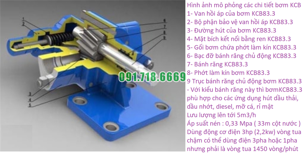 Ảnh đặc điểm chi tiết của bơm bánh răng áp suất 3.3 kg/cm2 KCB83.3