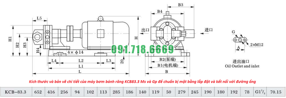 Bảng thông số kỹ thuật của bơm bánh răng áp suất 3.3 kg/cm2 KCB83.3