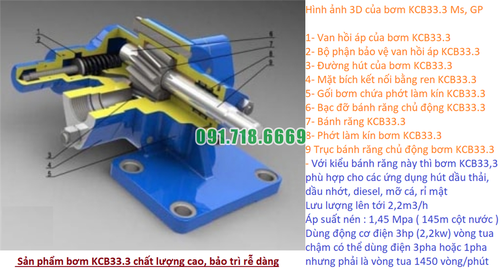 Tổng đài liên hệ mua máy bơm bánh răng KCB33.3 đường kính 21mm tốc độ 1400 vòng/phút