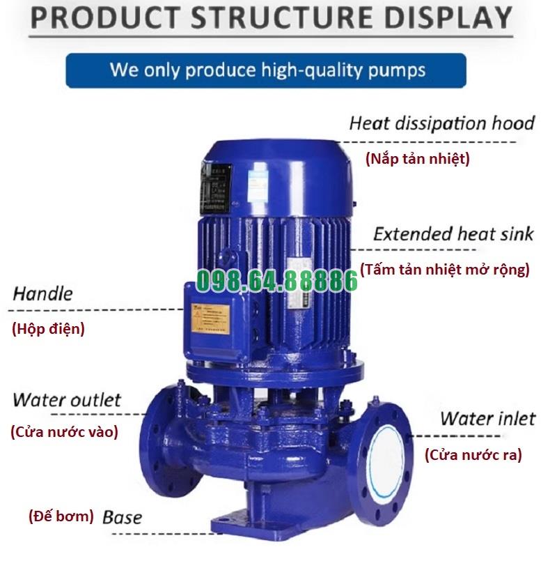 Bơm booster inline, bơm cấp nước trục đứng ISG65-160A, IRG65-160A 4kw, 23.4 m3/h