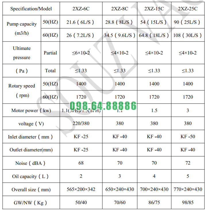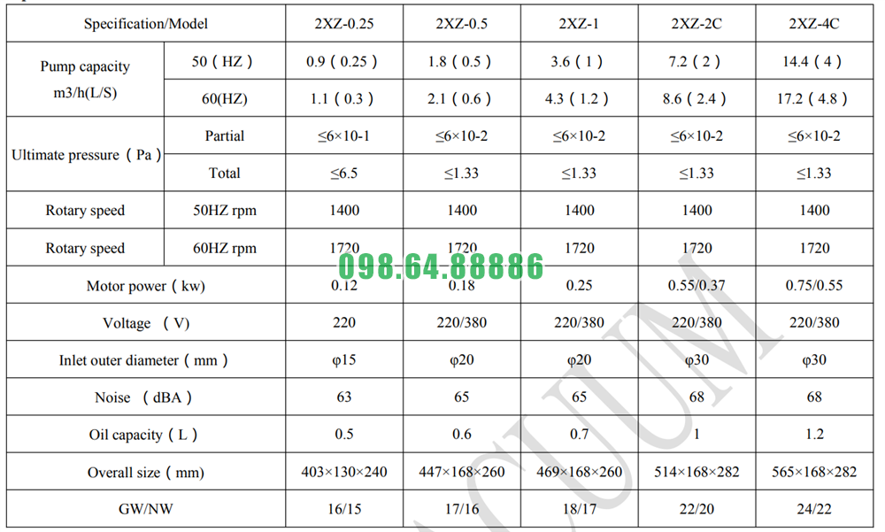 Model 2XZ-25C đạt độ chân không 0.1 – 0.3 Pa, đáp ứng tốt nhu cầu: