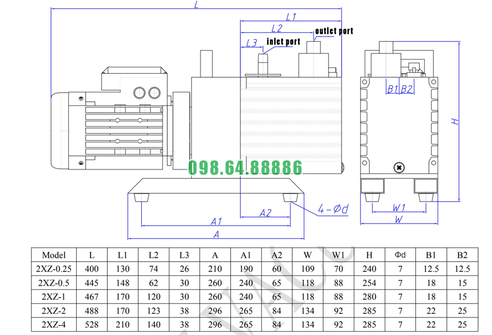 Bơm 2XZ-25C sở hữu thân máy ngắn, chiều cao thấp và cấu trúc liền khối giữa động cơ và buồng bơm. Nhờ đó: