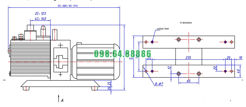 Bơm 2XZ-25C thường được lắp cạnh hoặc dưới chân máy chưng cất quay. Do kích thước gọn nên: