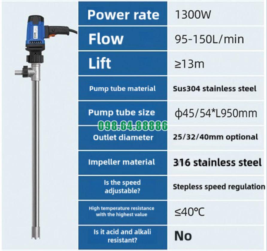 Thông số Bơm cắm điện JDT-1300W-304SUS