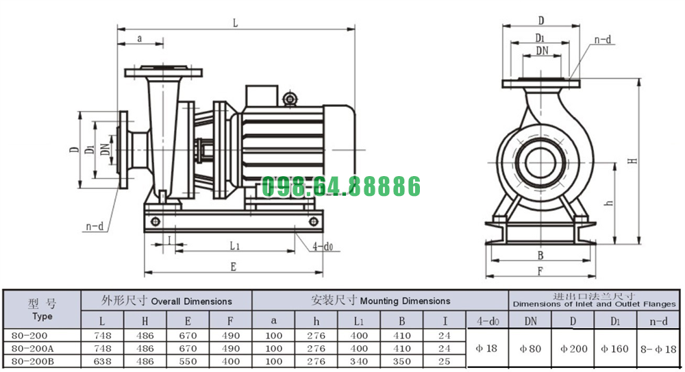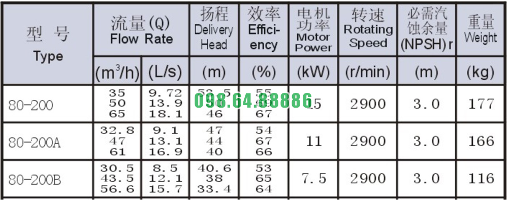 Bơm li tâm trục ngang mã SLW80-ISW80-200 lưu lượng 65 m3/h