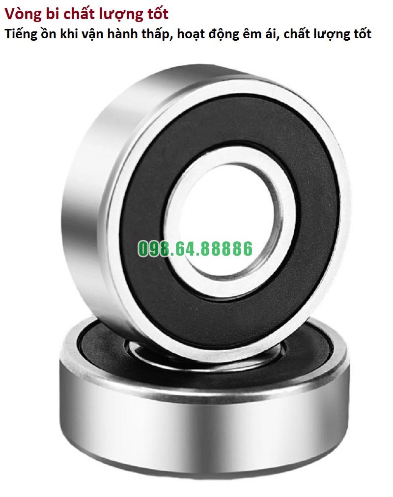 Sử dụng vòng bi chất lượng cao (SKF, NSK, hoặc tương đương) được bôi trơn vĩnh viễn hoặc có thể bảo dưỡng định kỳ.