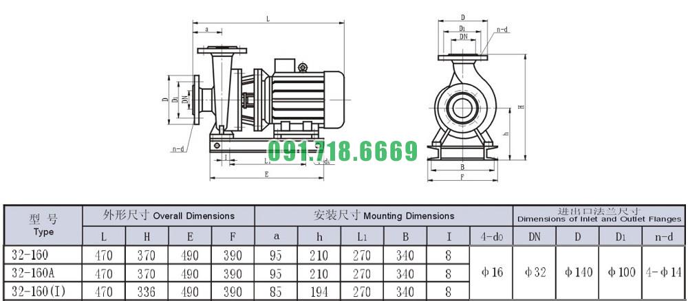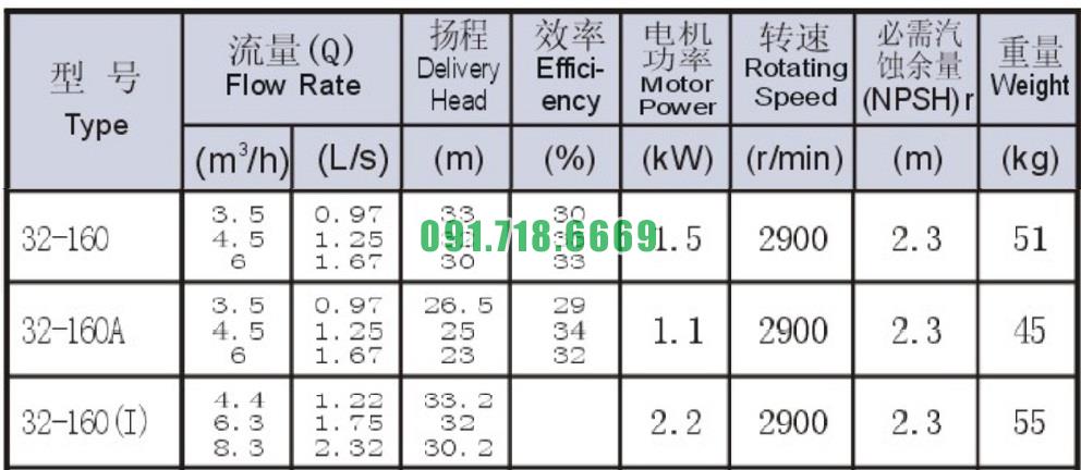 Bơm nước nằm ngang ISW32-160 công suất 1.5 kw
