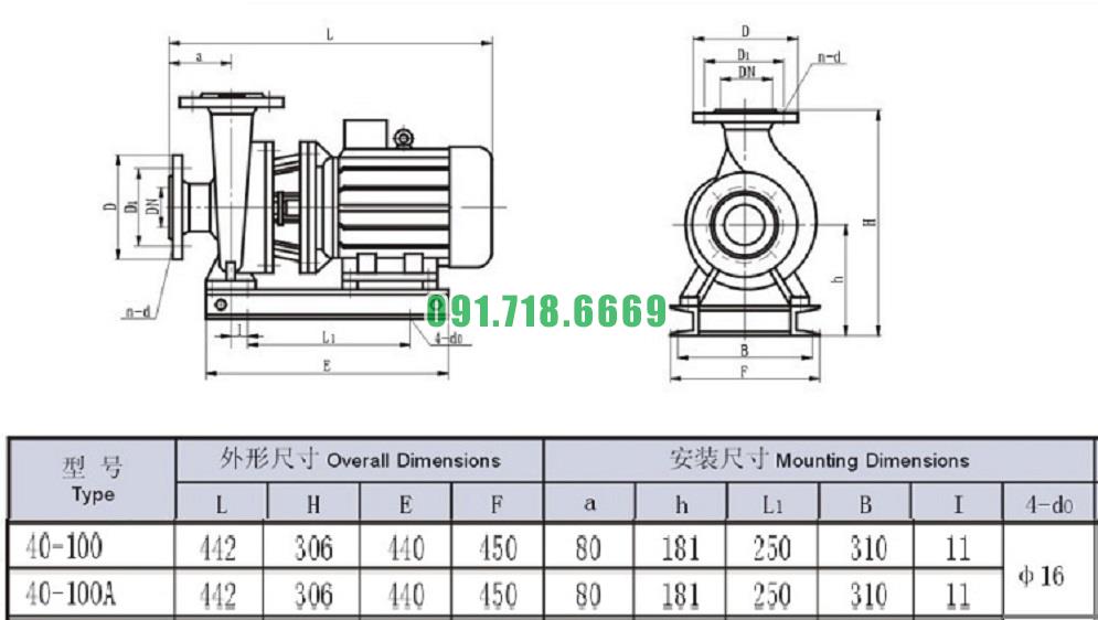 Bơm nước nằm ngang SLW-ISW40-100 công suất 0.55 kw