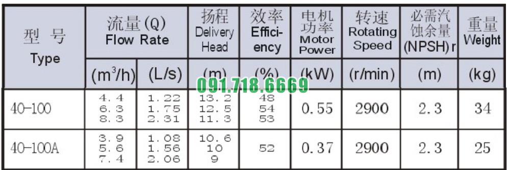 Công suất vận hành: Với động cơ công suất 0.55 kW, bơm SLW-ISW40-100 có thể đáp ứng nhu cầu vận chuyển nước với hiệu suất cao.