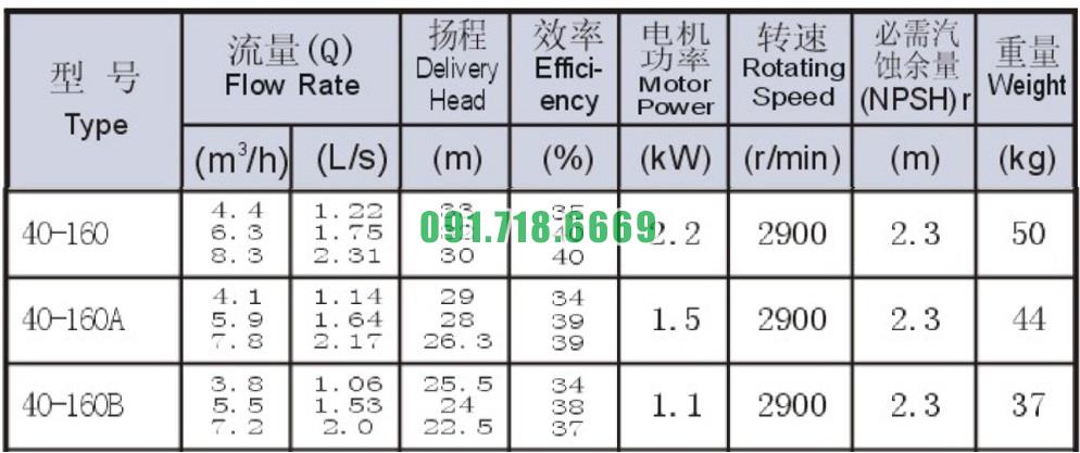 Bơm nước nằm ngang SLW-ISW40-160 đẩy cao từ 30m- 33m