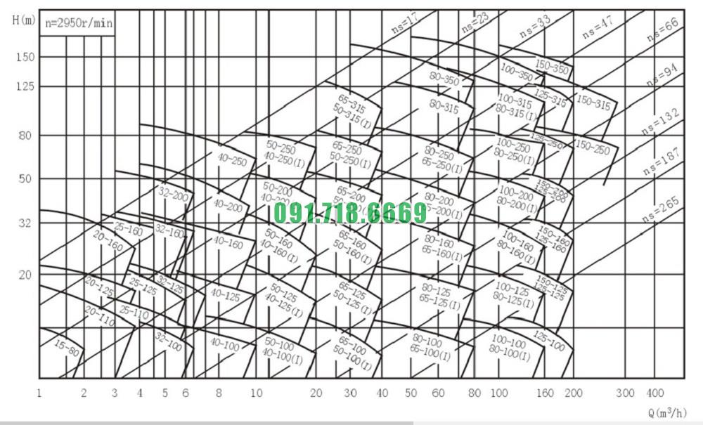 Đường cong hiệu suất bơm nước nằm ngang SLW-ISW40-200 công suất 2.2 kw