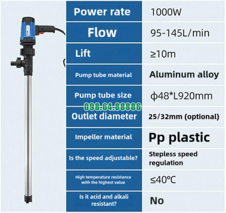 Bơm thùng phuy dạng ống dài model JDT-1000W-L92