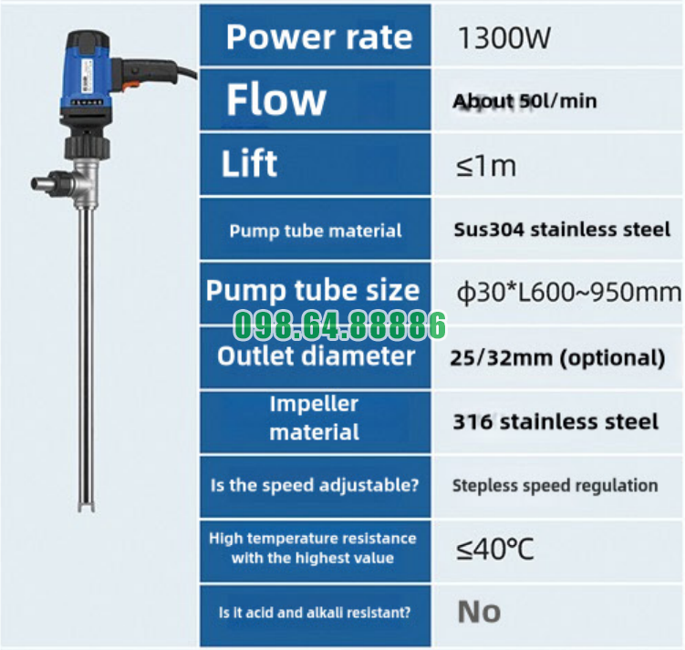Tại sao Bơm thùng phuy JDT-1300W-30 SUS304 có hiệu suất làm việc rất cao được lý giải bởi sự kết hợp hài hòa giữa động cơ 1300W mạnh mẽ, thiết kế cánh bơm tối ưu, cơ chế hút đáy hiệu quả và vật liệu inox SUS304 bền bỉ. Những yếu tố này giúp bơm vận hành ổn định, tiết kiệm thời gian và mang lại hiệu quả cao trong các ứng dụng bơm thùng phuy công nghiệp.