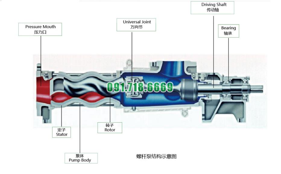 Loại bơm: Bơm trục vít đơn. Điều này có nghĩa là nó có một trục vít duy nhất để tạo áp lực và di chuyển chất lỏng.