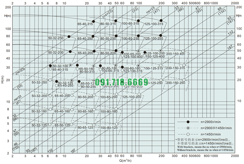 Đường cong hiệu suất làm việc của bơm li tâm cánh hở đường thoát đầu vào ra Dn100 model IHK50-32-125