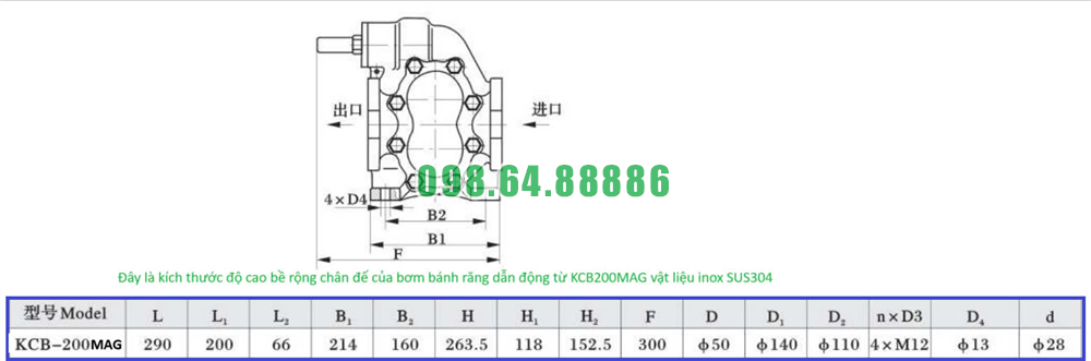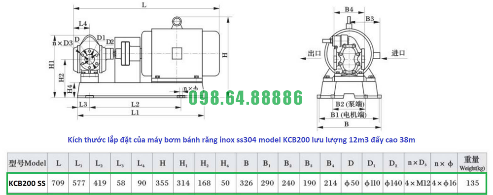Máy bơm bánh răng KCB200 có động cơ 4kw lưu lượng 12m3