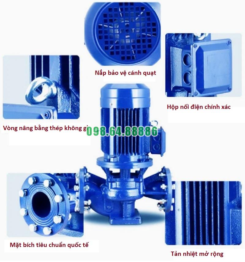 Máy bơm booster inline, bơm trục đứng ISG80-200B, IRG80-200B 15kw, 43m3, 60m