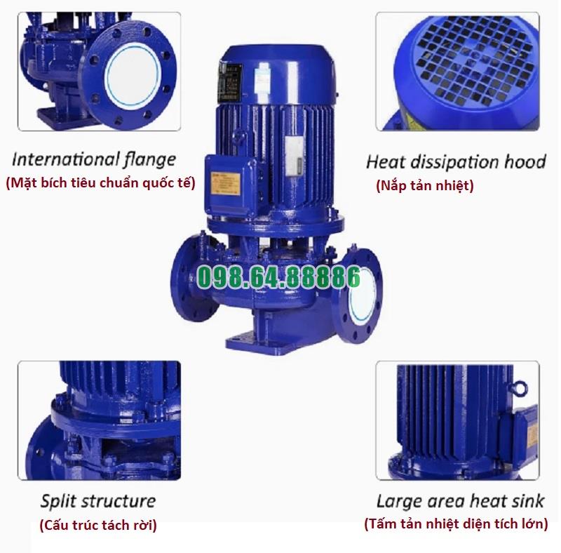 Máy bơm lùa, bơm inline, bơm tăng áp ISG65-200B, IRG65-200B, 5.5kw