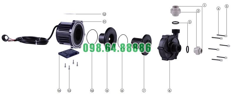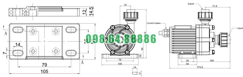 Hình ảnh cấu tạo và kích thước bản vẽ chi tiết bơm hóa chất điện 24v và 48v