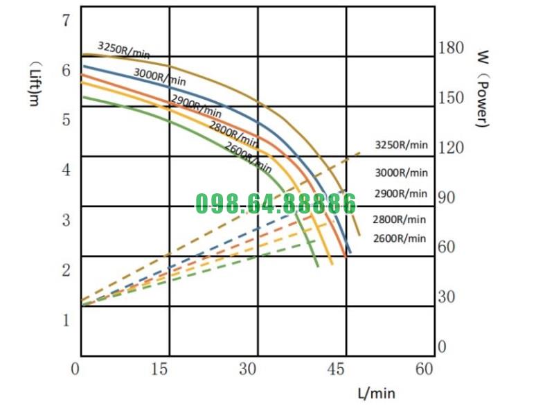 Đường cong hiệu suất bơm hóa chất điện áp 24v và 48v