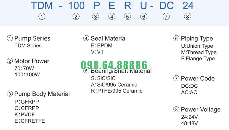 Bảng thông số kỹ thuật bơm hóa chất điện áp 24v và 48v TDM-70ERU-DC24