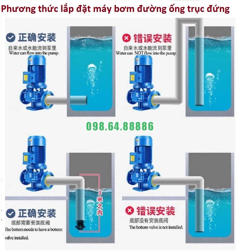 Đường ống hút phải được lắp ngắn nhất có thể, hạn chế co gấp và uốn cong. Nên lắp van một chiều và van khóa để tiện cho việc bảo trì. Đặc biệt, đường ống hút của bơm ly tâm trục đứng model ISG80-160B, IRG80-160B phải đảm bảo kín, tránh lọt không khí gây hiện tượng xâm thực.