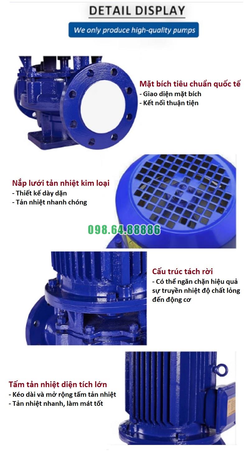 Máy bơm ly tâm trục đứng, bơm booster inline ISG80-160B, IRG80-160B 5.5kw