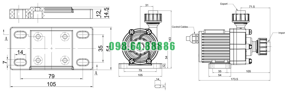 ✅ Cột áp đẩy cao 10.5m, thích hợp cho các hệ thống bơm hóa chất lên bể chứa hoặc đường ống cao.