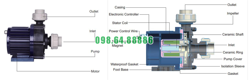 ✅ Động cơ không chổi than (BLDC) giúp giảm tiêu hao điện, tăng tuổi thọ bơm và giảm chi phí vận hành.